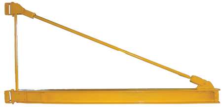 | Cranes accommodate most standard trolleys that support electric or manual hoists. Rotates 360<on tapered roller bearings with self aligning guide rollers. Heavy gussets reinforce the base plate to ensure alignment and rigidity. Rolled steel wide flange beam provides smooth trolley travel, with stops at both ends. Concrete footing required. Anchor bolts not included. |